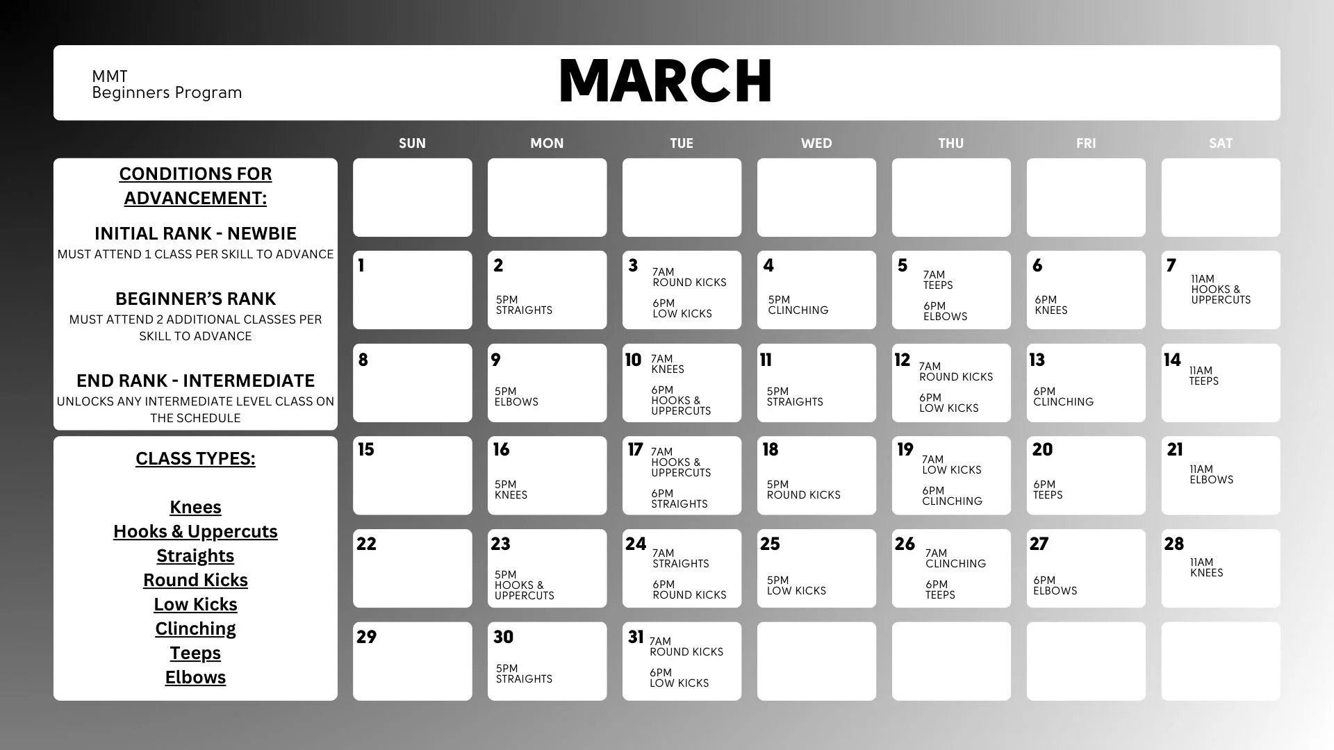 If it’s your first time trying Muay Thai, start with any of our Beginner classes. Be sure to arrive 5–10 minutes early and bring boxing gloves. Not sure what size? We recommend 16 oz for beginners. Don’t have gloves or hand wraps yet? No problem—we’ve got both available for purchase at the front desk.